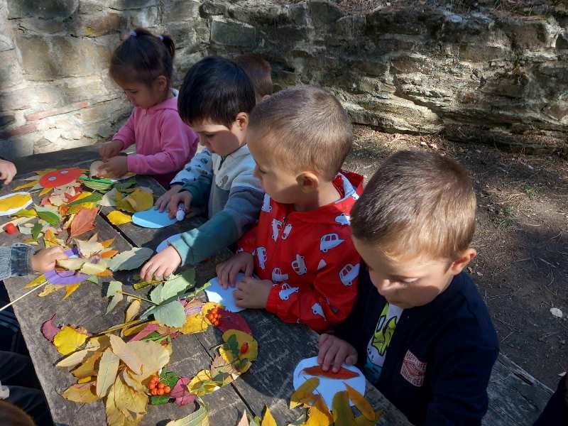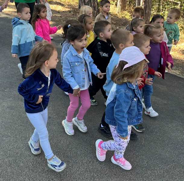 С голямо вълнение малчуганите наблюдаваха горските обитатели,събираха шишарки и пъстри есенни листа.