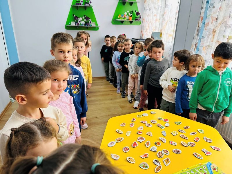 С много усмивки и ентусиазъм малките изследователи показаха отлични познания за полезните и не толкова полезни храни. С голяма сръчност и внимание те успяха да подредят всички продукти на правилните им места, без да допуснат нито една грешка!