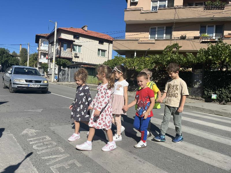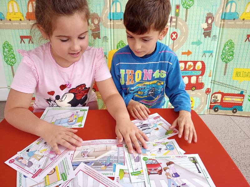 Чрез игри, децата се запознаха с основните правила за безопасно пресичане и поведение на пътя.