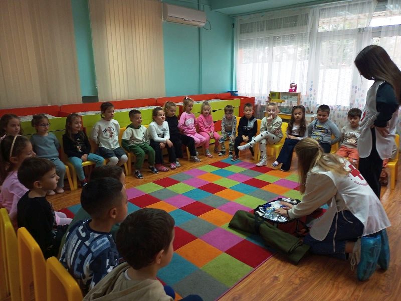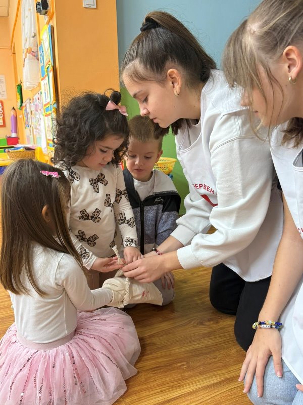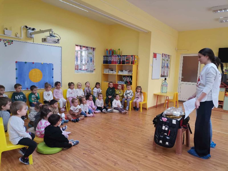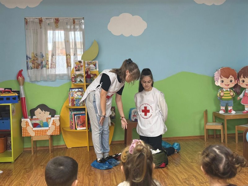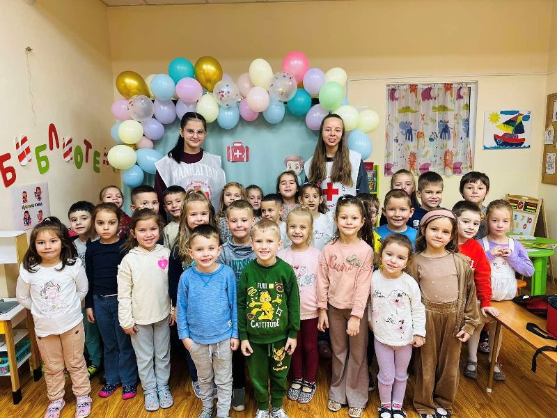На 11 ноември 2025 година в групите „Зайче“, „Лъвчета“, „Славейче“ и „Кокиче“ на гости бяха доброволци от БЧК. Те показаха на децата как се оказва първа долекарска помощ. Децата бяха много заинтересовани и участваха с желание. Благодарим на доброволците от БЧК за полезния и вълнуващ урок!