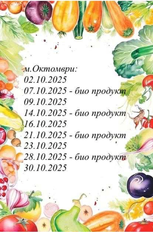 Уважаеми родители, запознаваме Ви със СХЕМА ЗА ПРЕДЛАГАНЕ НА ПЛОДОВЕ, ЗЕЛЕНЧУЦИ, МЛЯКО И МЛЕЧНИ ПРОДУКТИ И МЕД В ДЕТСКИТЕ ГРАДИНИ (за всеки месец) през УЧЕБНАТА 2025/2026 ГОДИНА