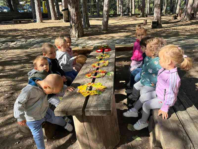 Там наблюдаваха промените в природата и събираха листа и шишарки, които използваха за красиви есенни творения. Сред природата децата играха на открито, дишаха чист въздух, забавляваха се и се чувстваха истински щастливи.