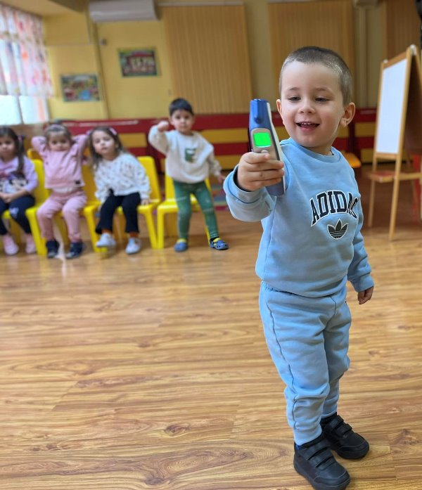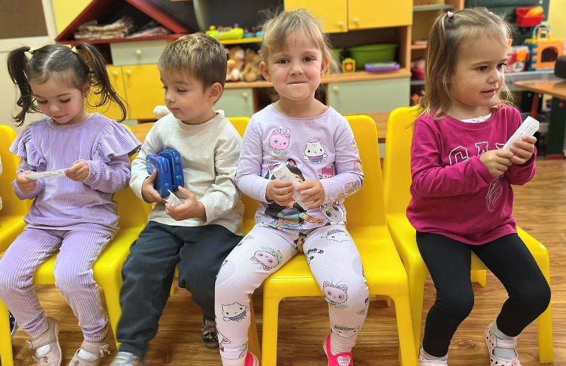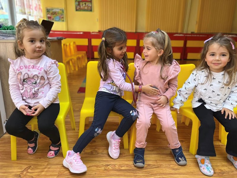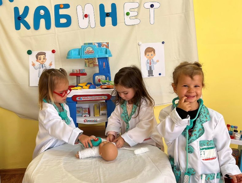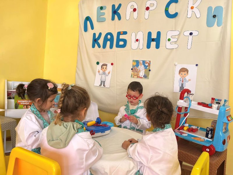 Д-р Мицов разказа за своята професия. Децата слушаха с интерес, задаваха въпроси и станаха малки български лекари за един ден.