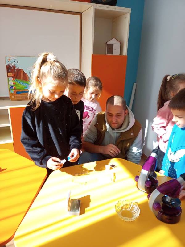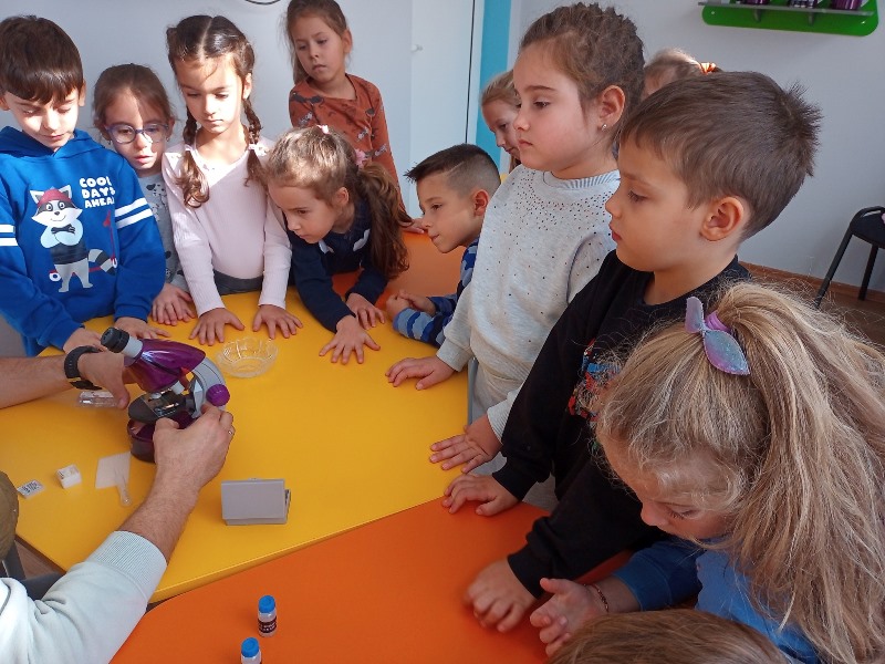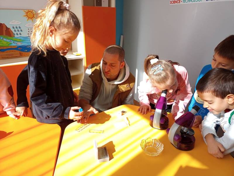 Любознателните малчугани с интерес задаваха въпроси, споделяха впечатления и направиха първите си стъпки в света на биологията и микроскопските изследвания.