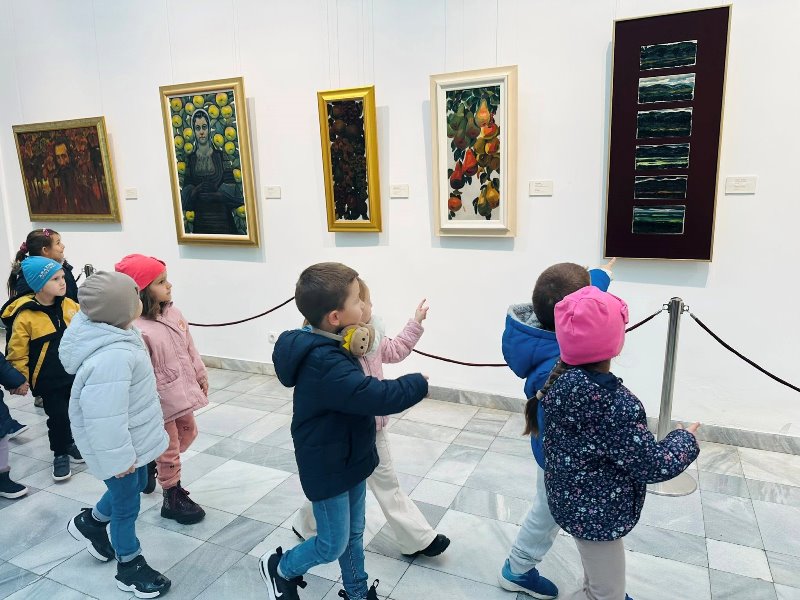 любопитство и възторг малките „славейчета“ разгледаха картините и останаха очаровани от пъстрите цветове, живите образи и магията на маслените бои. Те се потопиха в приказния свят на изкуството, откриваха любими цветове и разпознаваха познати форми и мотиви в творбите.