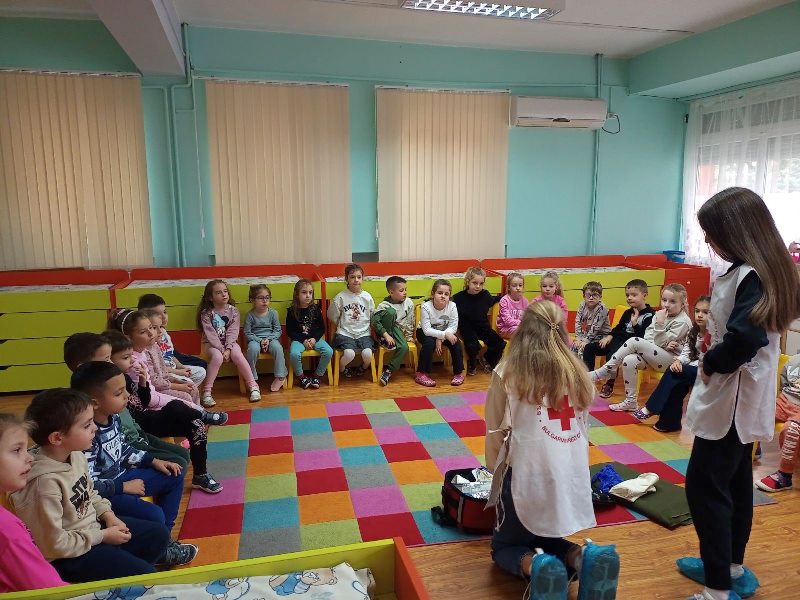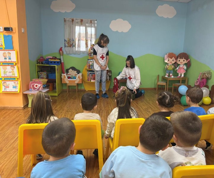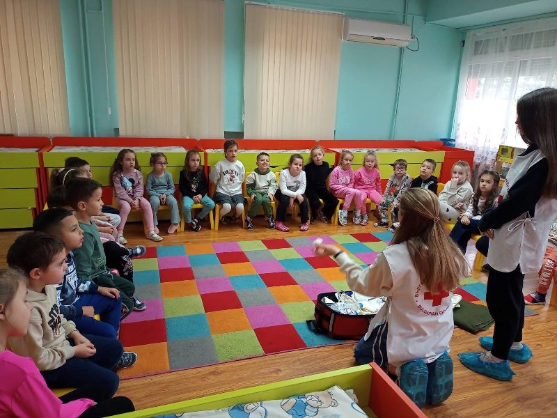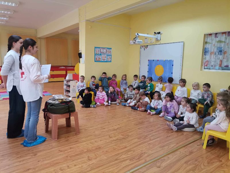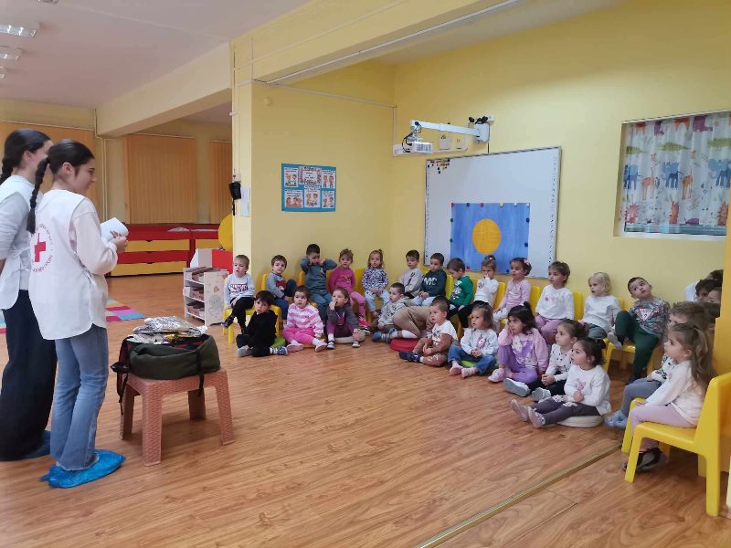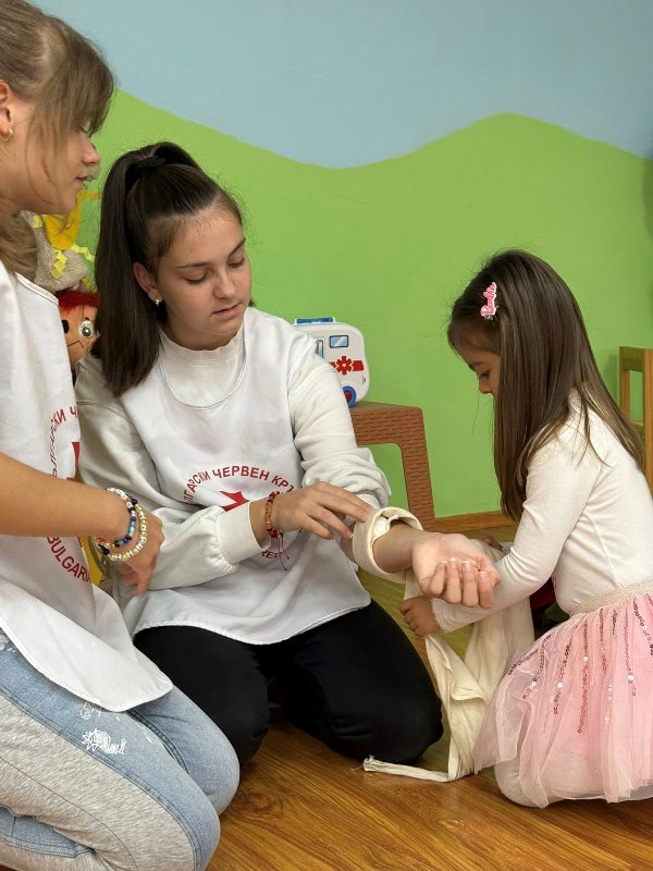 На 11 ноември 2025 година в групите „Зайче“, „Лъвчета“, „Славейче“ и „Кокиче“ на гости бяха доброволци от БЧК. Те показаха на децата как се оказва първа долекарска помощ. Децата бяха много заинтересовани и участваха с желание. Благодарим на доброволците от БЧК за полезния и вълнуващ урок!