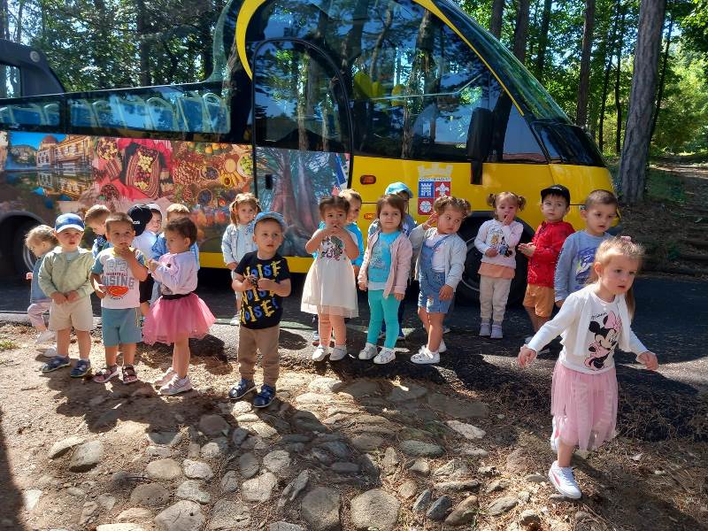 Малчуганите с нетърпение и радост се повозиха с атракционното автобусче из красивият ни град,стигайки до лесопарк "Хисарлъка".