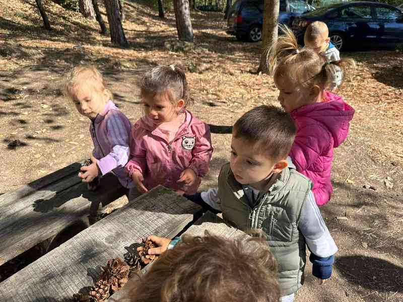 Там наблюдаваха промените в природата и събираха листа и шишарки, които използваха за красиви есенни творения. Сред природата децата играха на открито, дишаха чист въздух, забавляваха се и се чувстваха истински щастливи.