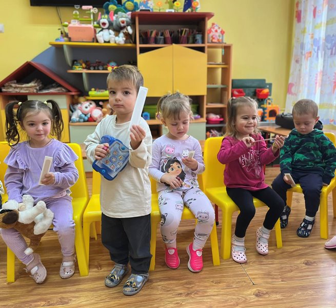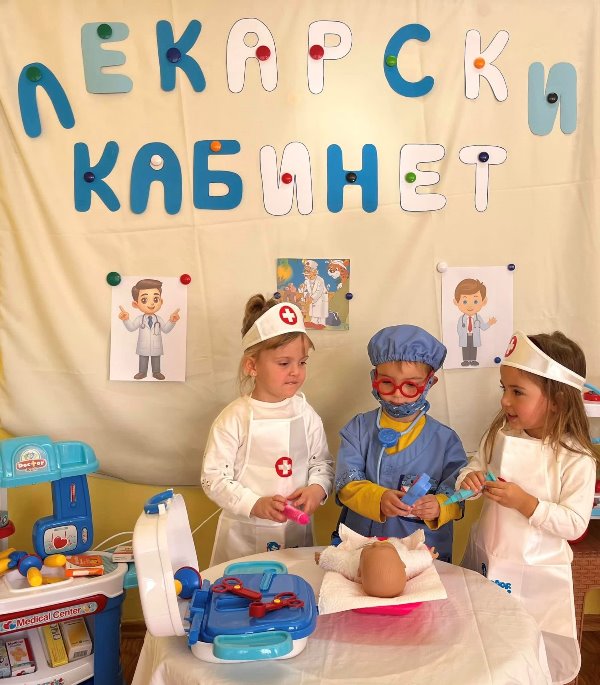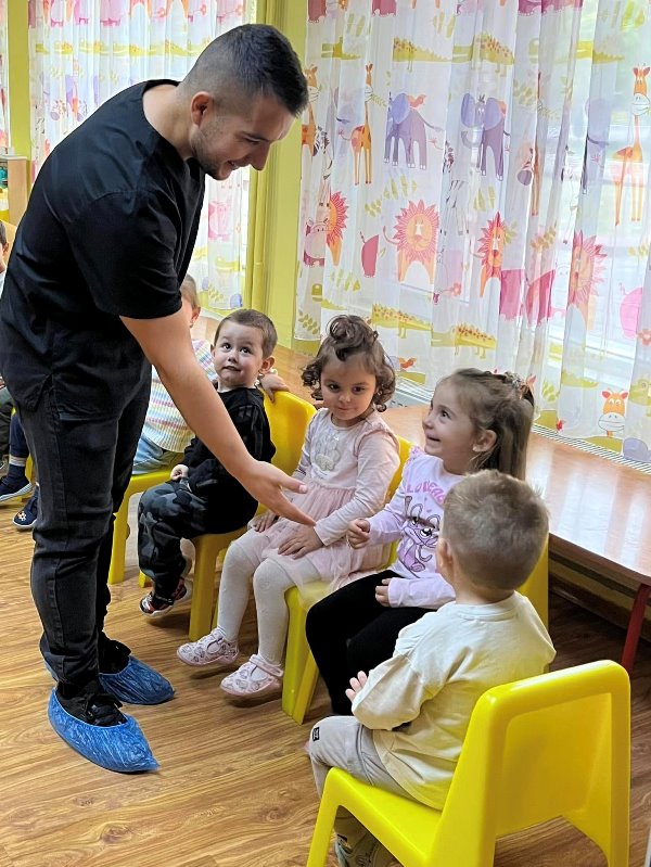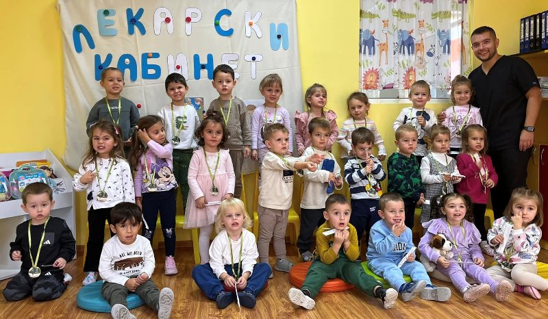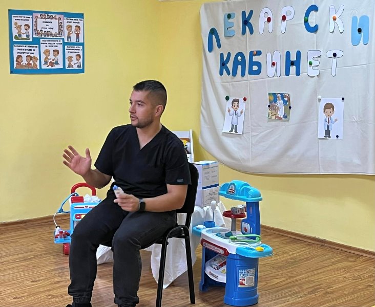 Д-р Мицов разказа за своята професия. Децата слушаха с интерес, задаваха въпроси и станаха малки български лекари за един ден.