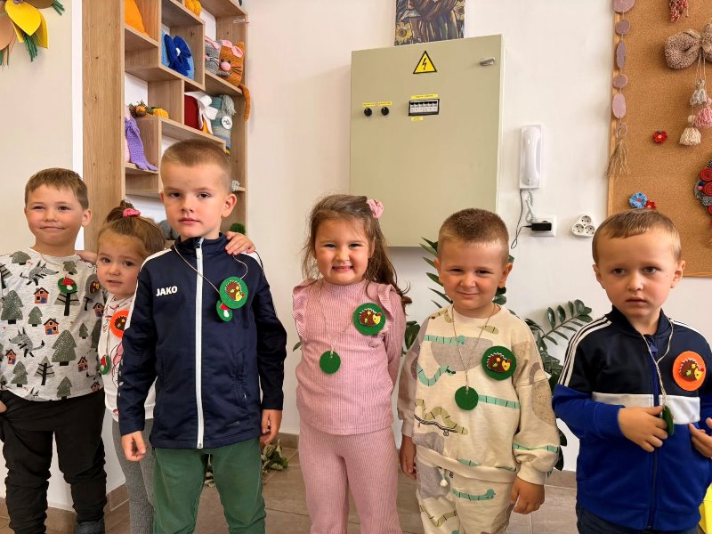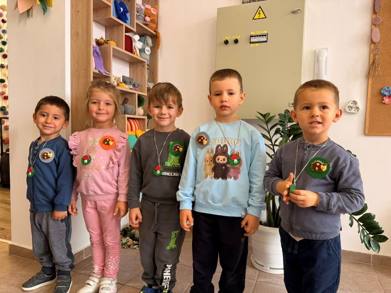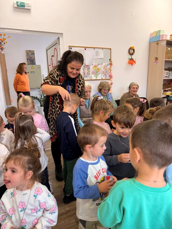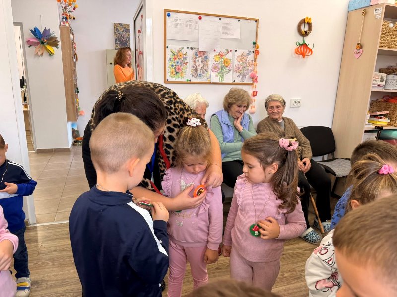 В знак на благодарност, потребителите на центъра подариха на децата ръчно изработени брошки и герданчета, направени с много обич, а на групата – специален подарък, сътворен от сърце.