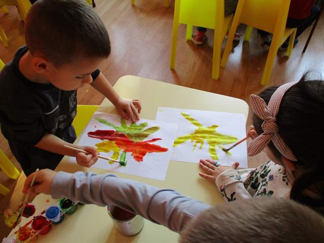 Багрите на есента се бяха разположили с цялата си прелест и позлата в ежедневието им - изработваха красиви букети от листа и есенни цветя.