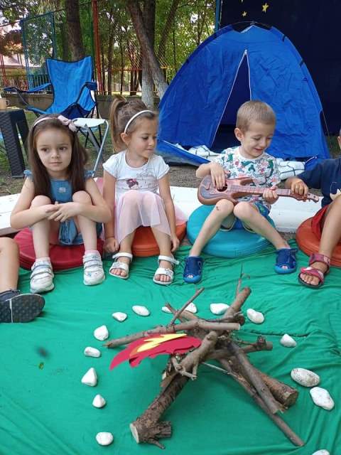 Веселите дечица пресъздадоха лагерен огън край реката с песни и забавни истории.