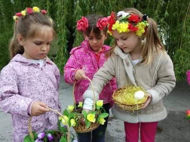 Момиченцата от групите бяха облечени с красиви носии, а в ръцете си носеха пълни кошнички с цветя. Косите им бяха украсени с пъстри китки и разноцветни венчета. Те пееха песни и наричаха за здраве и благополучие. Трудолюбивите момченца накъсаха върбови клончета за празника и влязоха в ролята на стопани, които с нетърпение очакват лазарките.А пък на 19.04.2019 децата от групи "Светулка" и "Калинка пресъздадоха обичаите за празника Цветница.